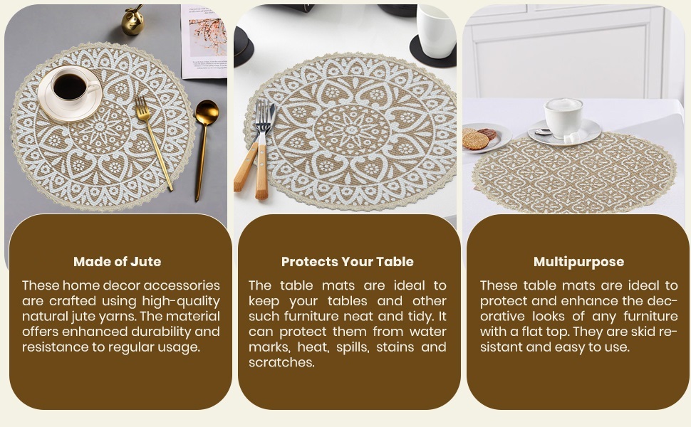 The post Saral Home White Jute & Cotton Printed Table Mat – Pack of 4 pc, 38×38 Cms appeared first on offervine.